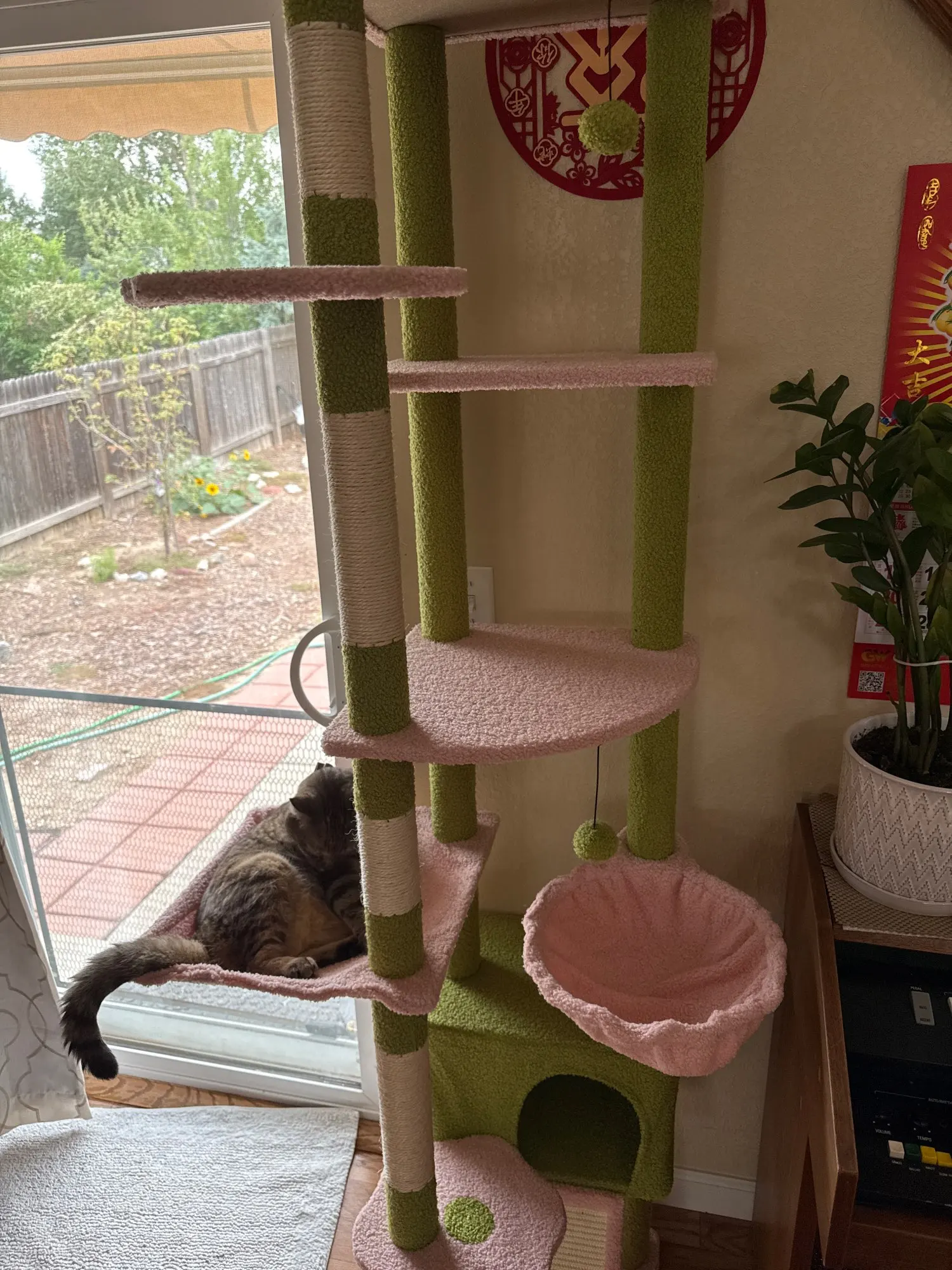 Arbre à Chat Vert et Rose 230‑255 cm Style Cactus avec Condo et Hamac | Cactusia